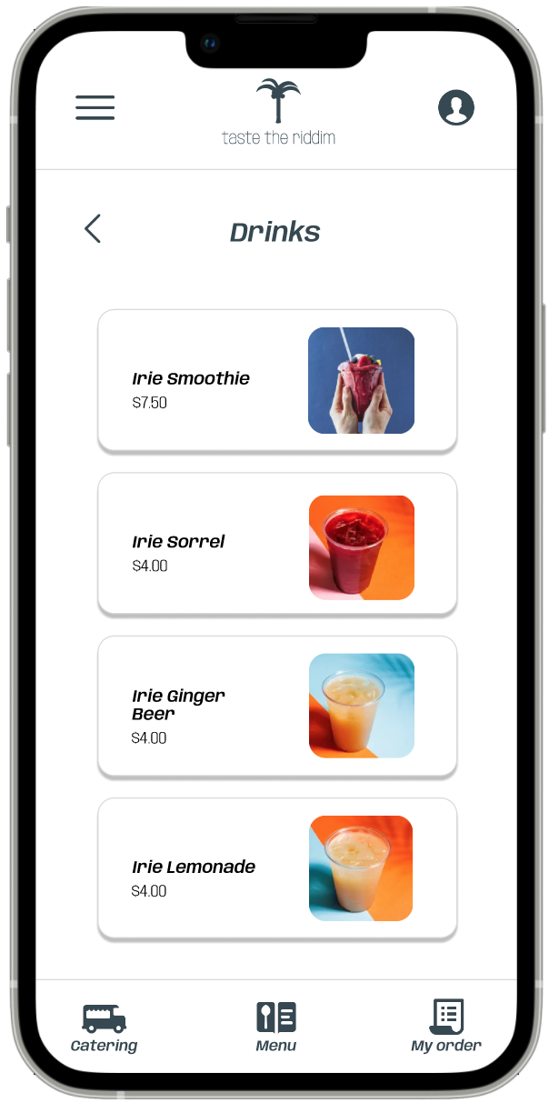 Design iterations were made after reviewing initial sketches and digital wireframes with the owner of Irie Kitchen. Overall he was pleased with the design of the platform and felt it was on brand with the company.
